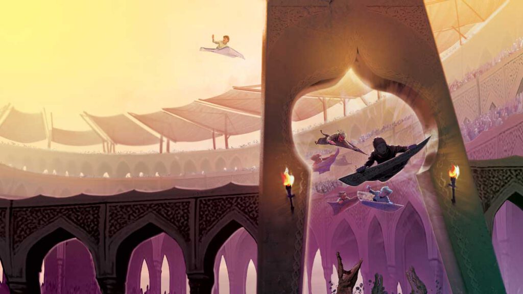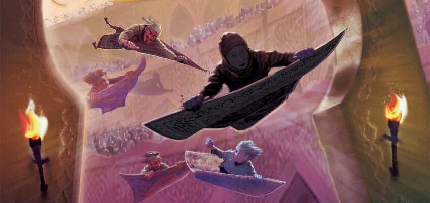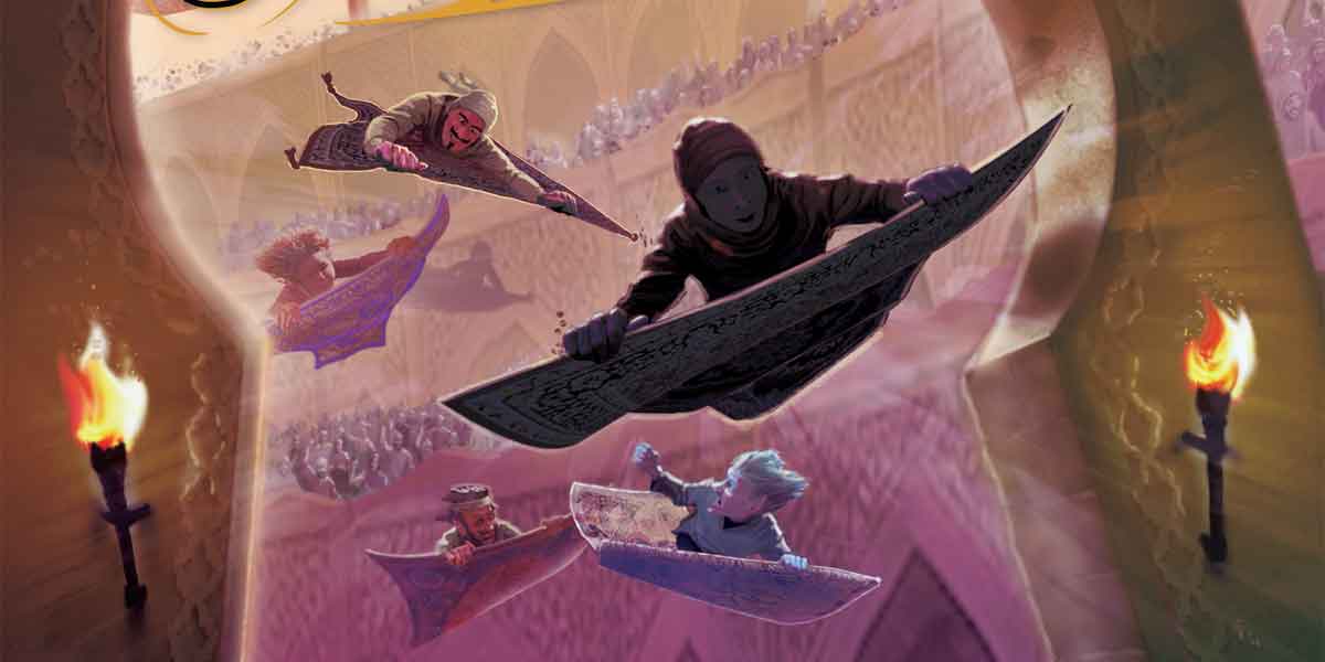 Wat zie je hier precies? Nou het lijkt erop alsof je getuige bent van een spannende vliegende tapijt race. Het nieuwe boek zal zich afspelen op een nog niet eerder beschreven continent van Dizary – Ryme. Dit uitgestrekte gebied bestaat vooral uit zand en heet niet voor niets Sandbakh. Het zal weer een dolkomisch verhaal worden, zoals je gewend bent van de boeken uit deze wold. Hou de site goed in de gaten voor update rond de release van het boek.